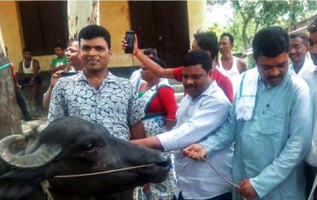 भैँसी वितरण गर्न लहानमा आयोजित कार्यक्रम । प्रदेश २ सरकारका कृषि तथा सहकारीमन्त्री (कुर्तामा) शैलेन्द्रप्रसाद साहले पूर्वकेन्द्रीय मन्त्री राजल...